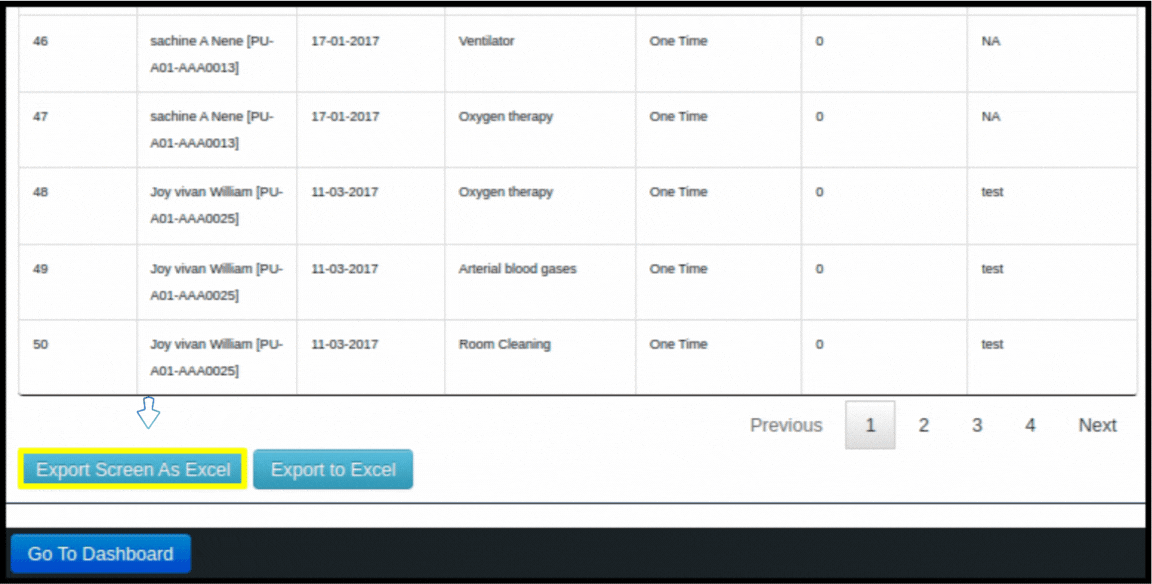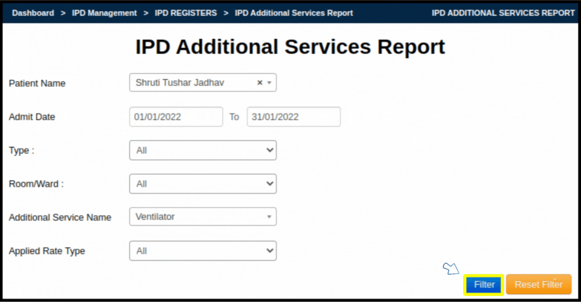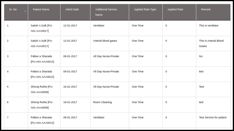 6. It will show Patient Name, Admission Date, Additional Service Name, Rate applied for that services, etc.