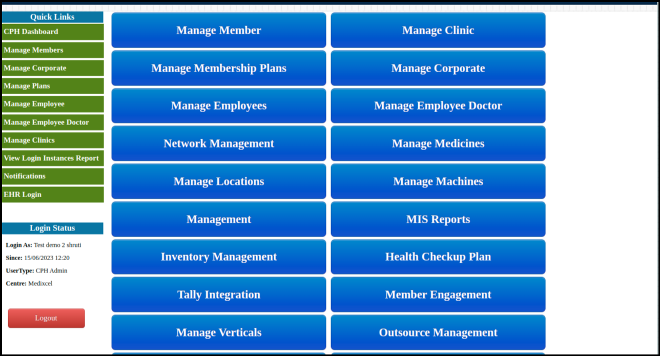 CPH : https://demo2.medixcel.in/CPH/newCphLogin.php