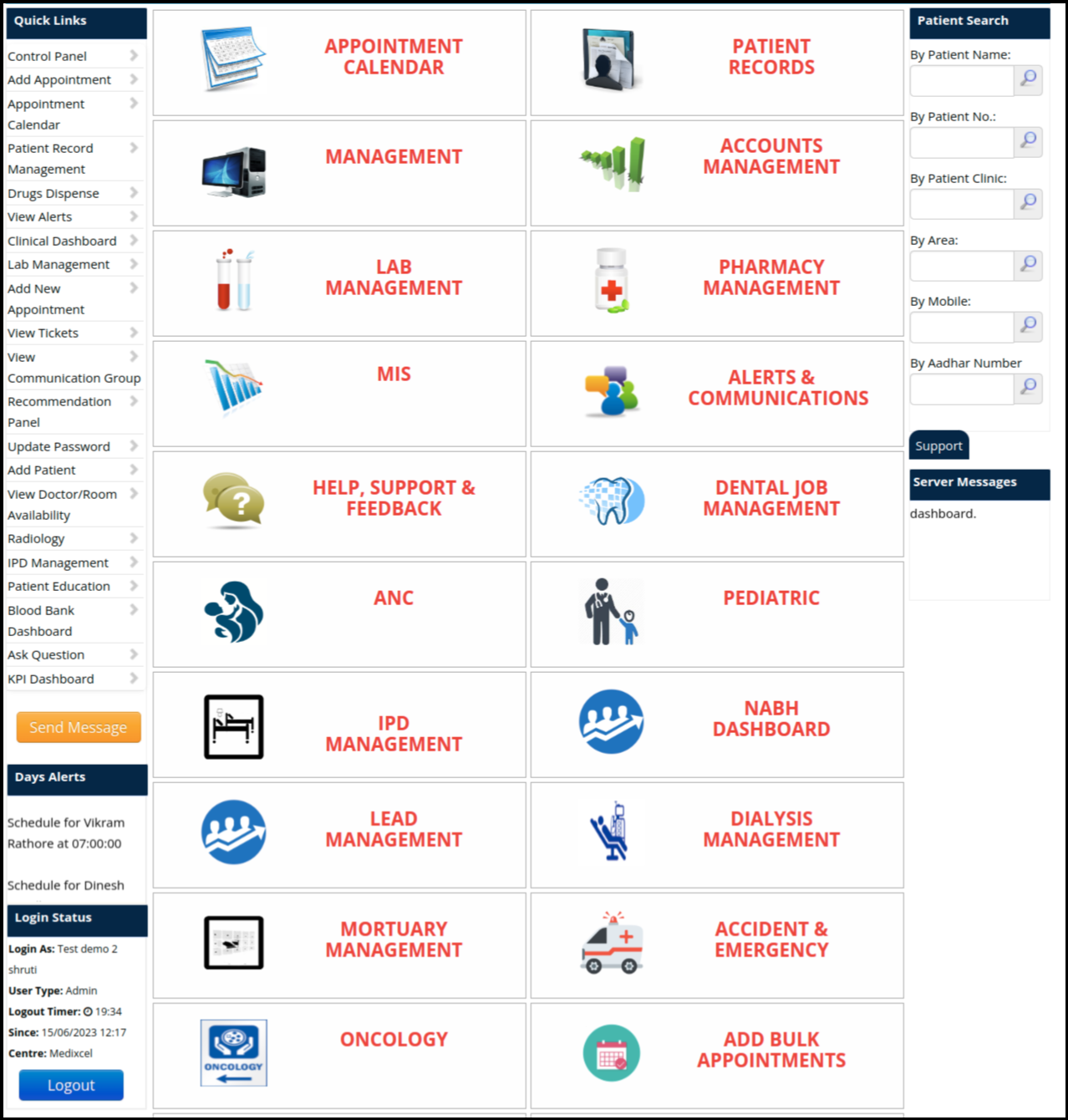 EHR : https://demo2.medixcel.in/newLogin.php?alerts=UzE.
